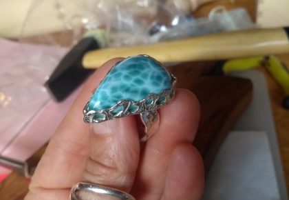 Anello decoro Traforo con Larimar